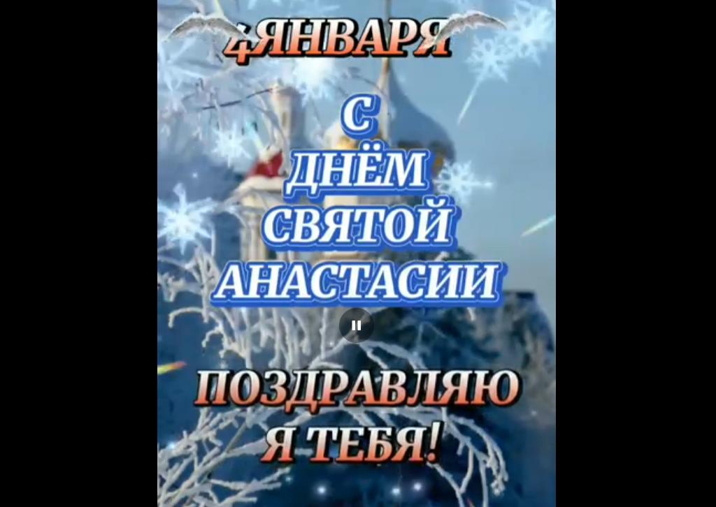 Красивое зимнее видео поздравление на церковный праздник 4 января с днём святой Анастасии. Вы так же можете СКАЧАТЬ этот ролик и отправить друзьям и родным.