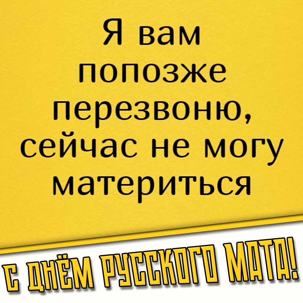 Прикольная картинка «С днём русского мата! Я вам позже перезвоню, сейчас не могу материться!»
