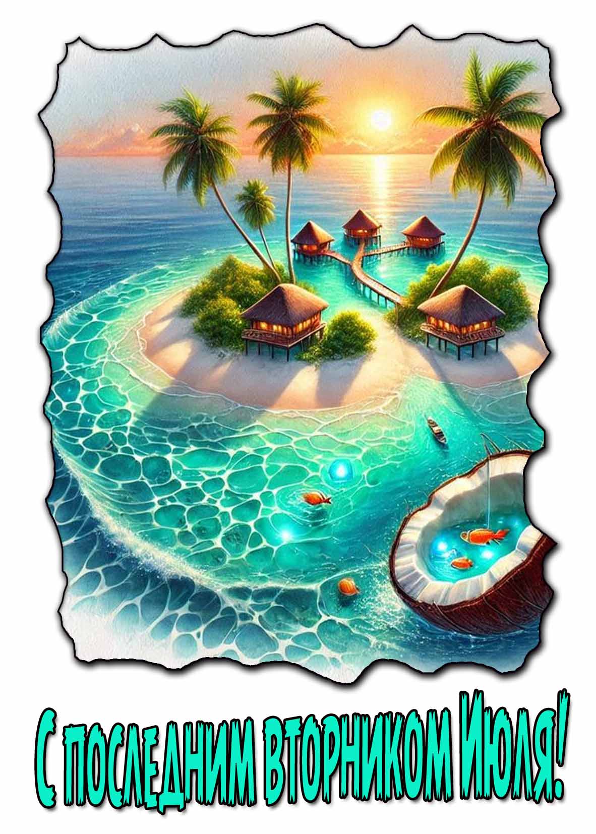 Провожаем последние Июльские деньки. Красивые, солнечные, летние открытки для пожелания и поздравления с последним вторником уходящего Июля. Скачивайте прикольные, креативные и новые картинки и отправляйте их всем друзьям и знакомым в социальные сети и мессенджеры. Желаем, классного последнего Июльского вторника!